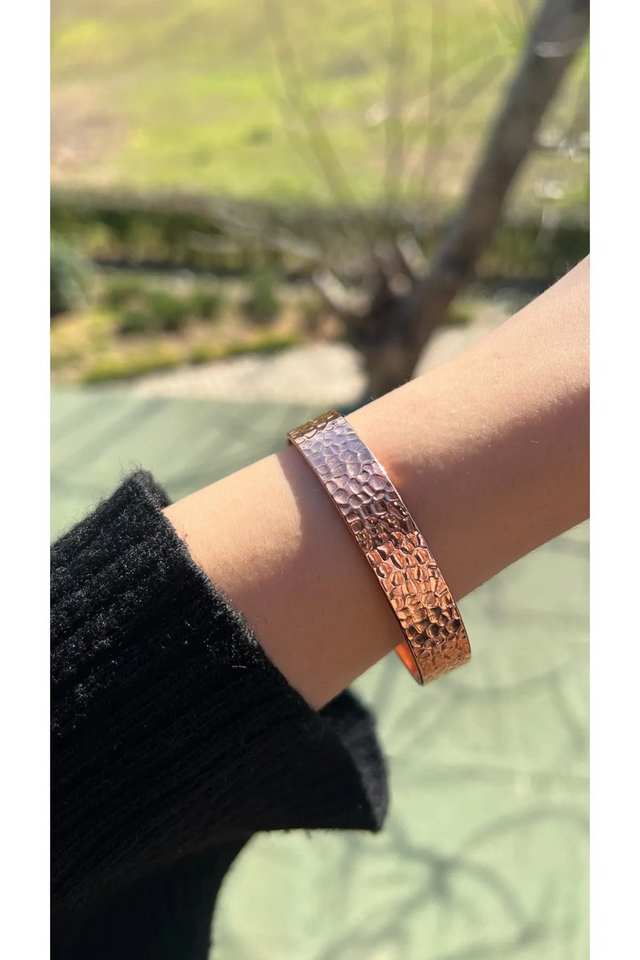 Handcrafted Pure Solid Copper Hammered Cuff Bracelet - Unique Artisan Jewelry for Men and Women