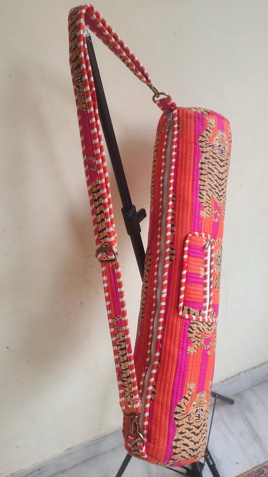 Handcrafted Quilted Yoga Mat Bag In Tiger Print Design Adjustable Strap Lightweight Fabric Perfect For Travel And Daily Use