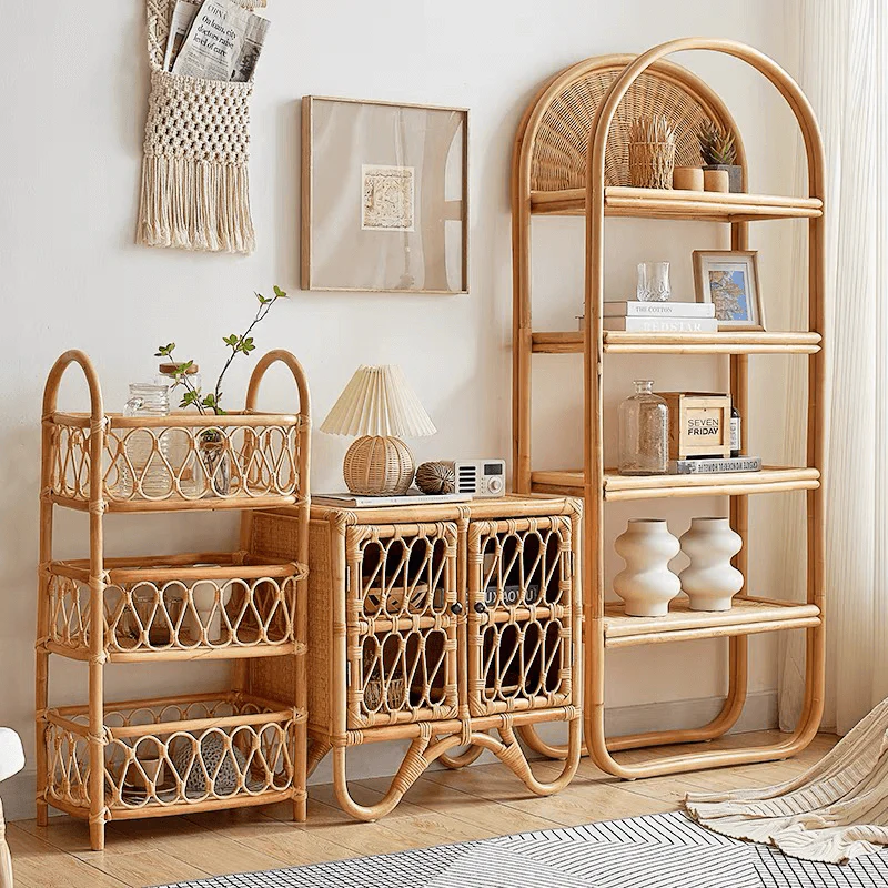 Handcrafted Rattan 3-Tier Storage Stand - Natural Floor Rack for Kitchen, Bedroom, and Office Storage
