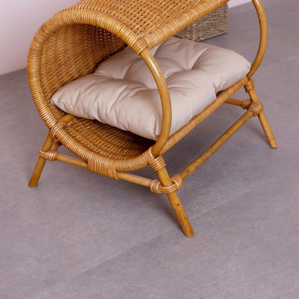 Handcrafted Rattan Pet Chair Elevated Wicker Pet Lounge Seat with Cushion Stylish Pet Furniture Cozy Pet Armchair OEM ODM