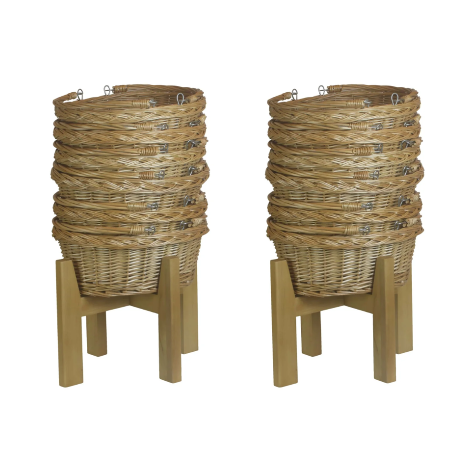 Handcrafted Rattan Shopping Basket & Wood Display Stand, Elegant Folding Handle Basket For Market & Retail Shop, Made In Vietnam