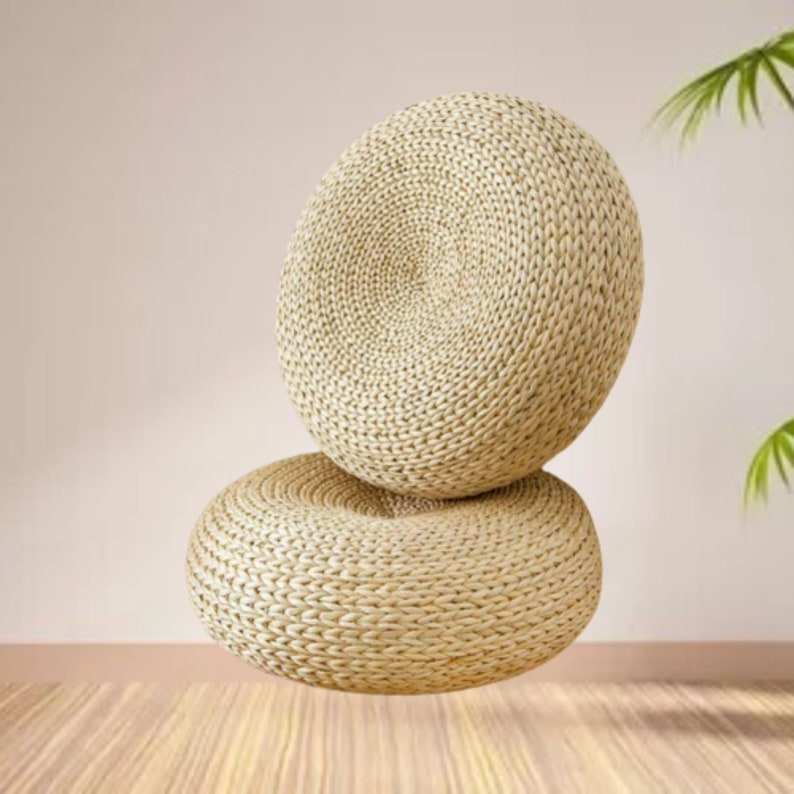 Handcrafted Tatami cushion: Knitted straw seat pad for meditation.