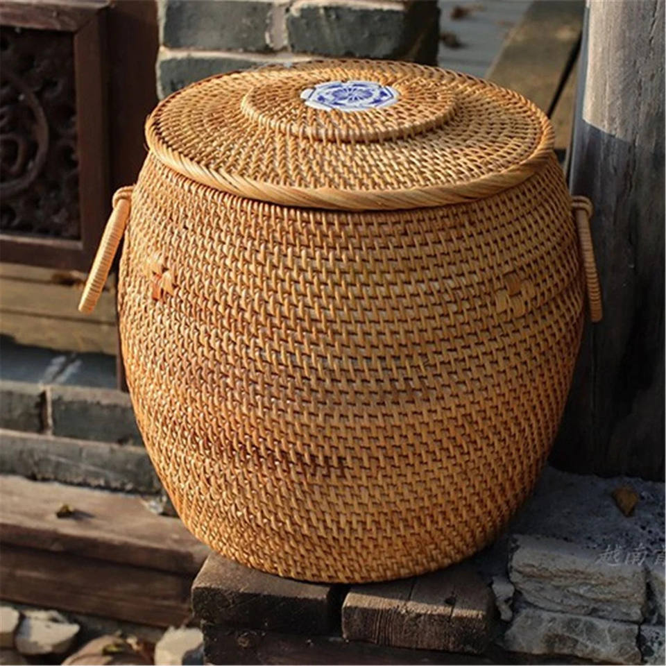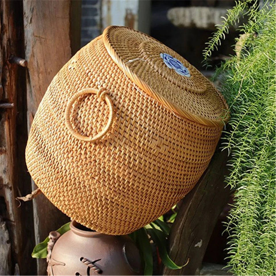 Handcrafted Rattan Weave Storage Basket with Lid for Tea Cake Storage Desktop Storage Box Home Decor