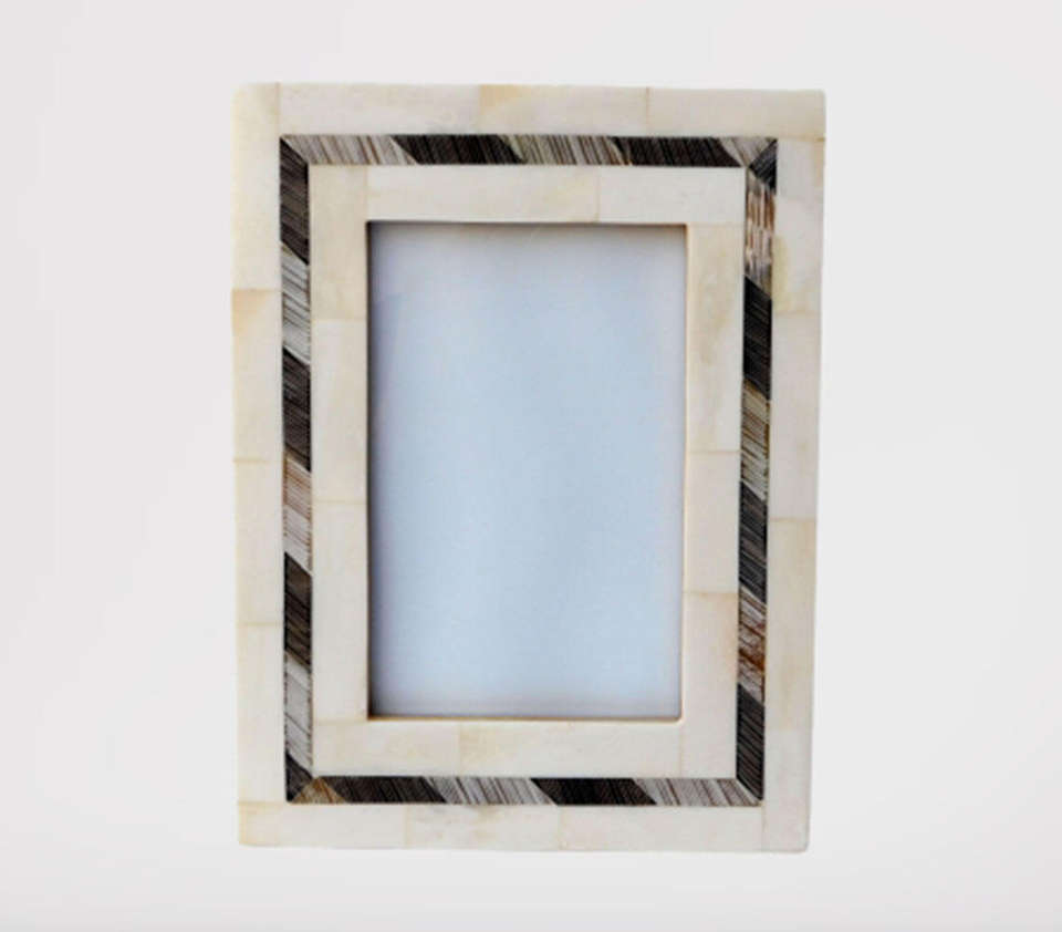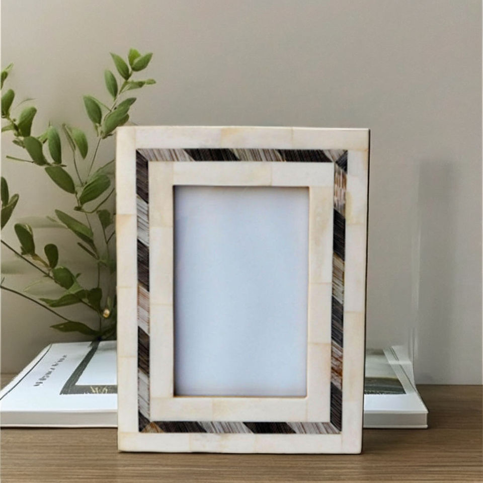 Handcrafted Rectangle Shaped Bone Horn MDF Inlay Photo Frame Customized Printing Intricate Hand Carving Decorative Tabletop