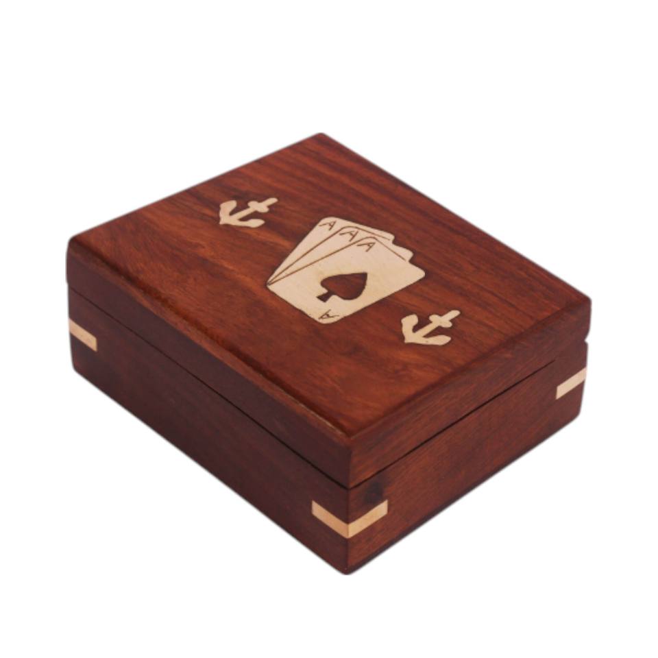 Handcrafted Rectangular Wooden Storage Box with Unique Ace Playing Card Design Artisan Made Educational Toy Organizer