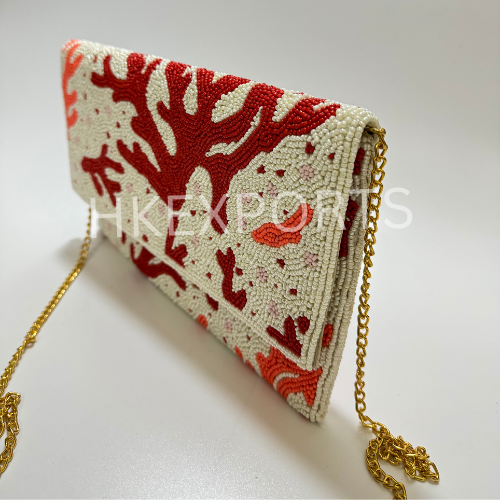Elegant Romantic Evening Purse Handcrafted Red and White Beaded Valentine's Day Clutch Intricate Beadwork Tote Bag
