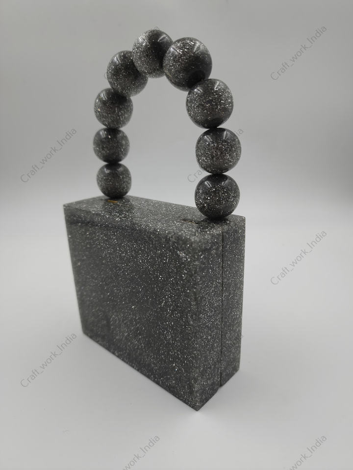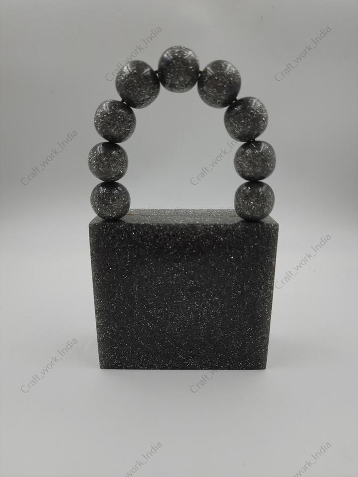 Handcrafted Resin Evening Clutch Bag With Beaded Handle Luxury Party Wedding Designer Handbag For Women