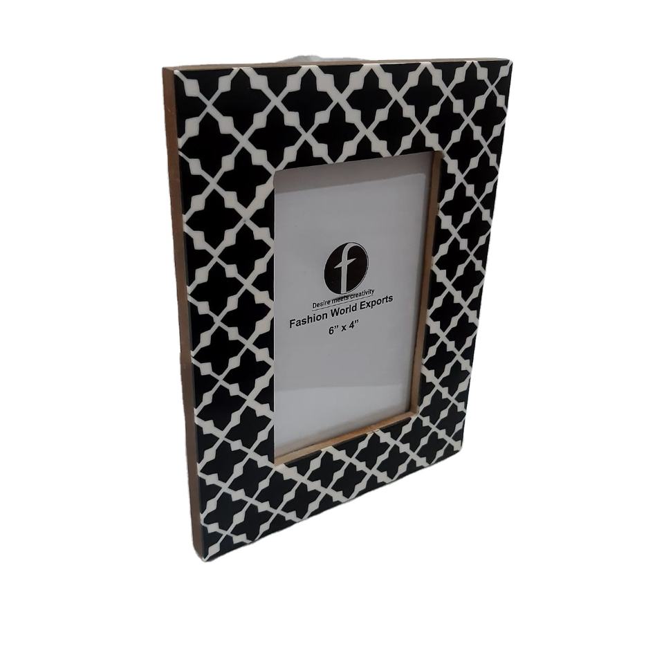 Handcrafted Black and White Resin Inlay Photo Frame Unique Black and White Resin Inlay Handmade in India