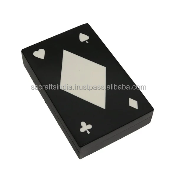 Handcrafted Resin Playing Card Box Wood Dice and Card Box Poker Card Game Luxury Gift Double Box Poker Made in India