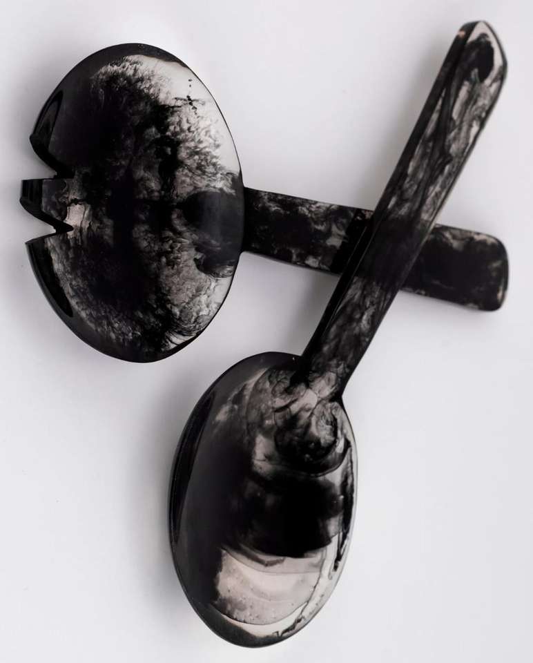 Handcrafted Resin Salad Server Black Swirl Design Stylish Dining Accessory Daily Use Party Events Return Gifts Dishwasher Safe