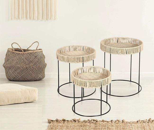 Handcrafted Rope Nesting Table For Kitchen Home Decor With Durable Structure And Multi Purpose Utility Design