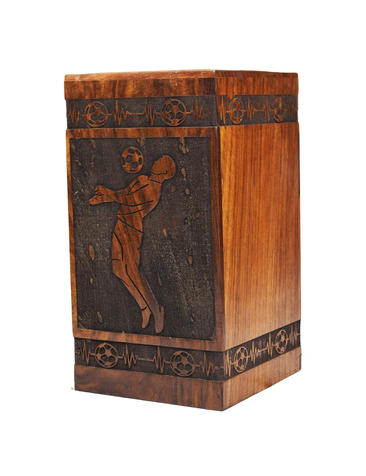 Handcrafted Rosewood Urn Box Football Design Memorial Keepsake