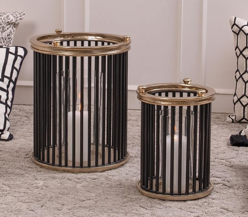 Handcrafted Round Black And Golden Finished Candle Stand Perfect For Elegant Living Bedroom And Dining Room Decor