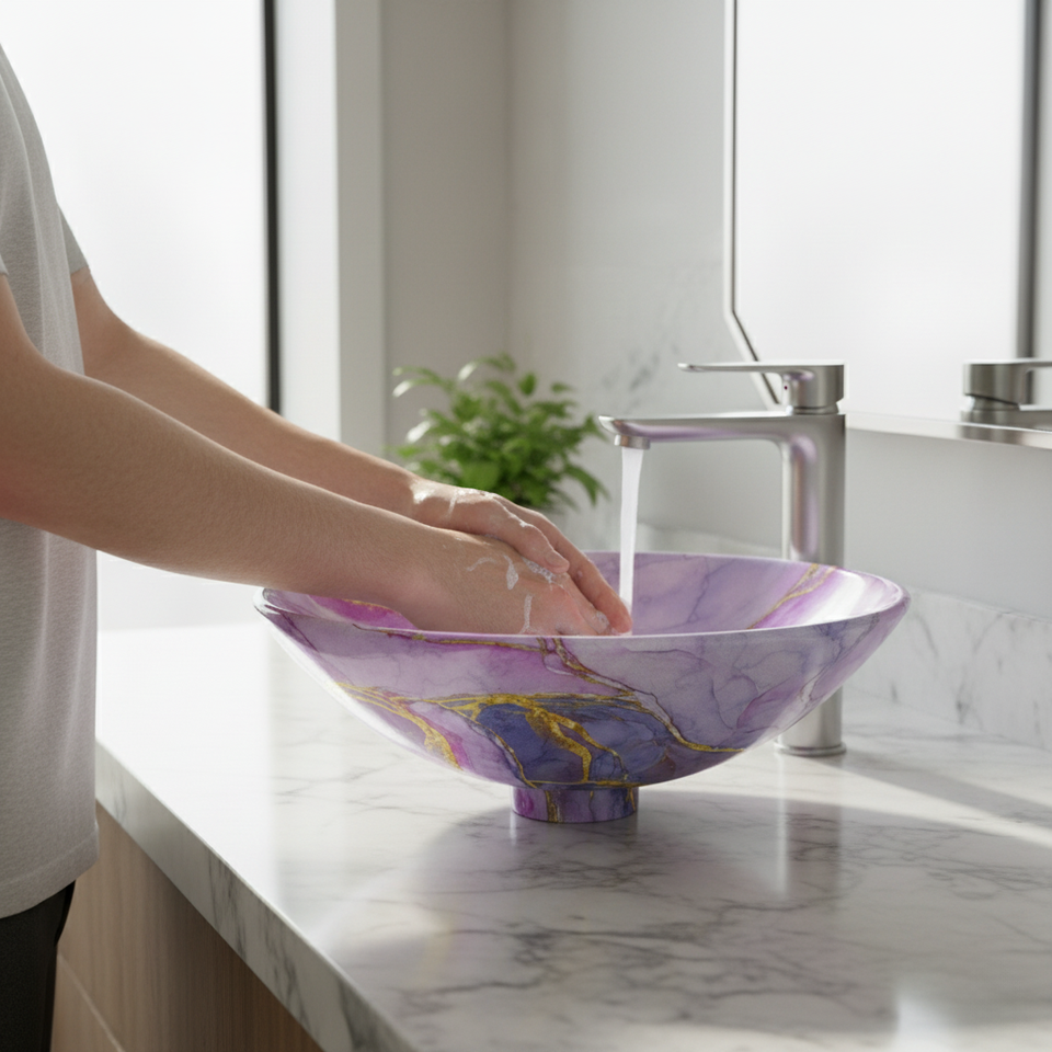 Handcrafted Round Metal Table Top Wash Basin Modern Purple Marble Abstract Design Bathroom Sink for Washroom Factory Supplier