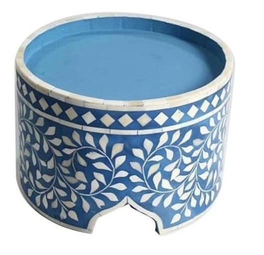 Handcrafted Round Wood Cake Stand with Intricate Bone Inlay Detailing Elegant Serving & Decorative Display for Luxury Interiors