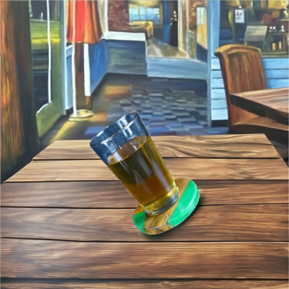 Handcrafted Modern Round Wood & Green Epoxy -Natural Artisan Antique Design for Home Bar & Living Room