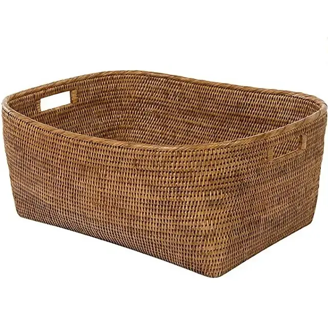 Handcrafted Rounded Rattan Basket with Handle Sea Grass Basket Handmade Elegant for Home Kitchen Storage Holding Usage Low Moq
