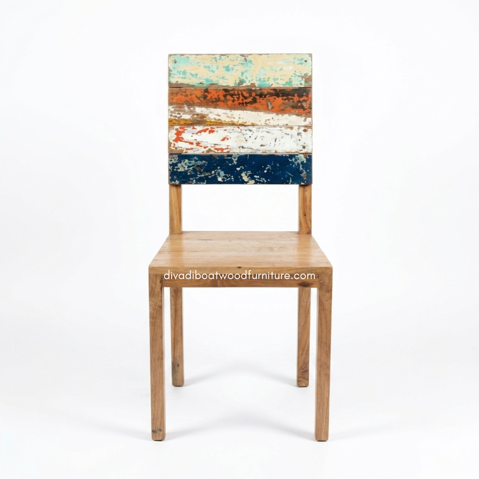 Handcrafted Rustic Dining Chair Reclaimed Boat Wood Eco-Friendly Original Color Indoor Outdoor Resort Home Villa Furniture