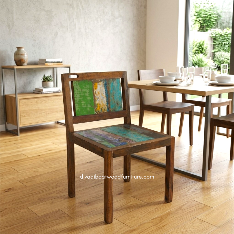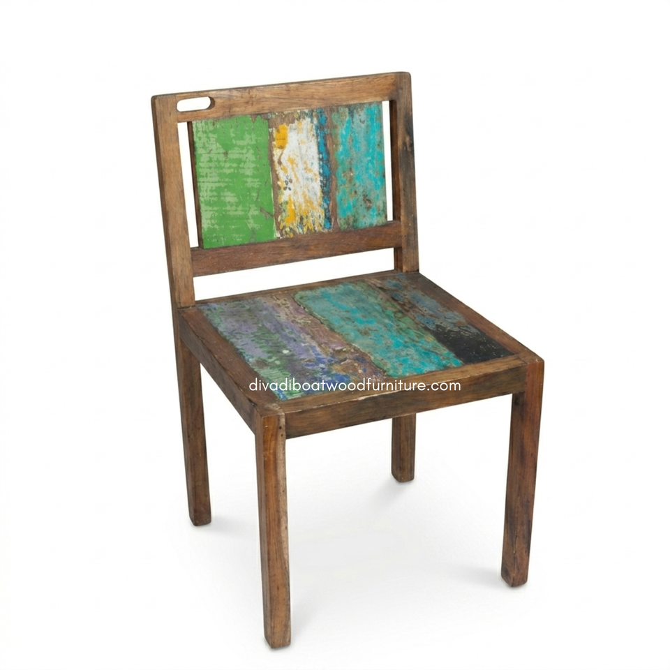 Handcrafted Rustic Dining Chair Reclaimed Boat Wood Eco-Friendly Original Color Indoor Outdoor Resort Home Villa Furniture