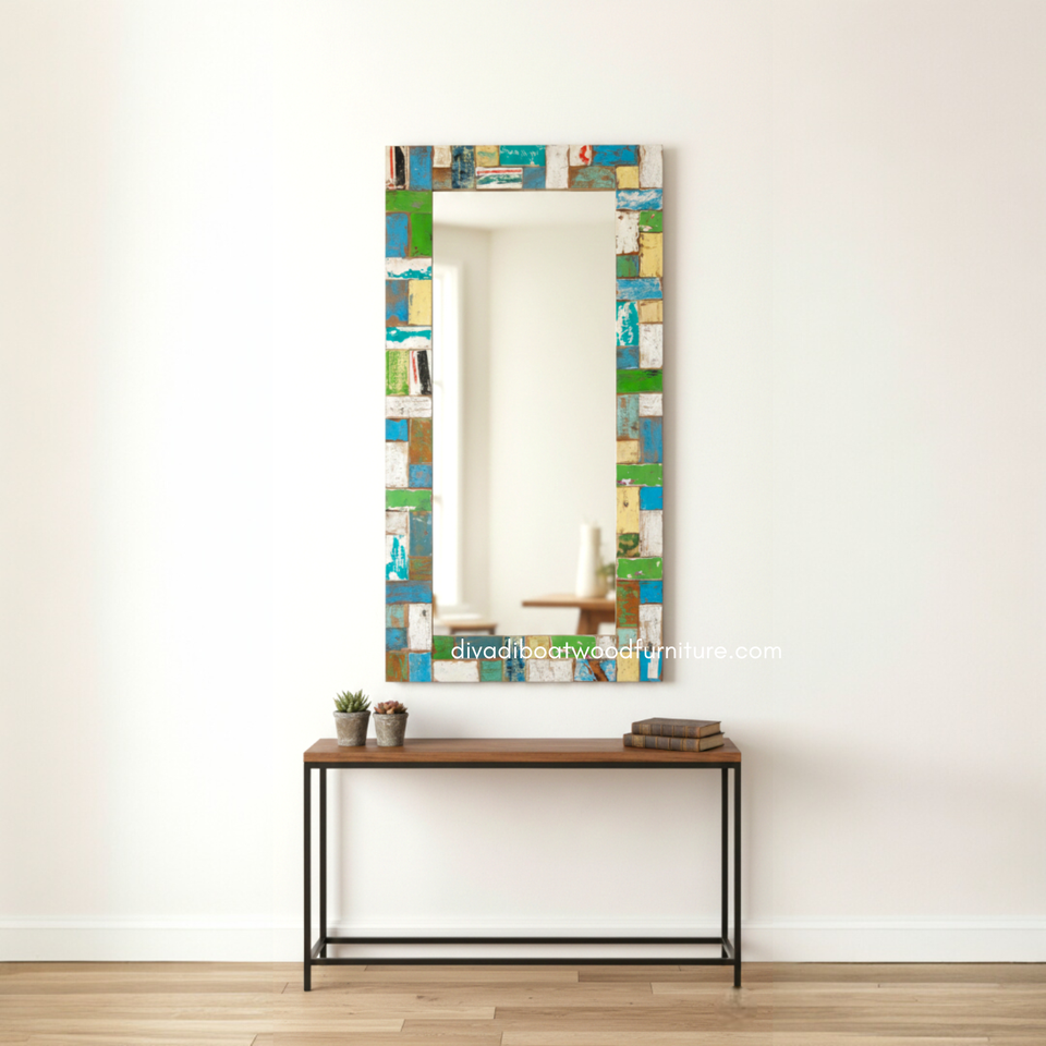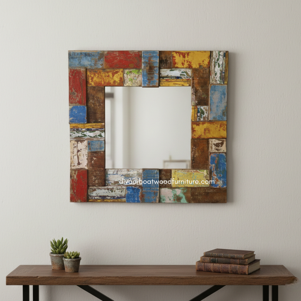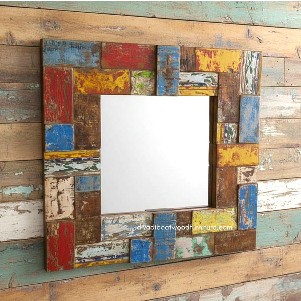 Handcrafted Rustic Eco-Friendly Durable Mirror From Reclaimed Boat Wood Original Color for Wall & Home Decoration Wholesale