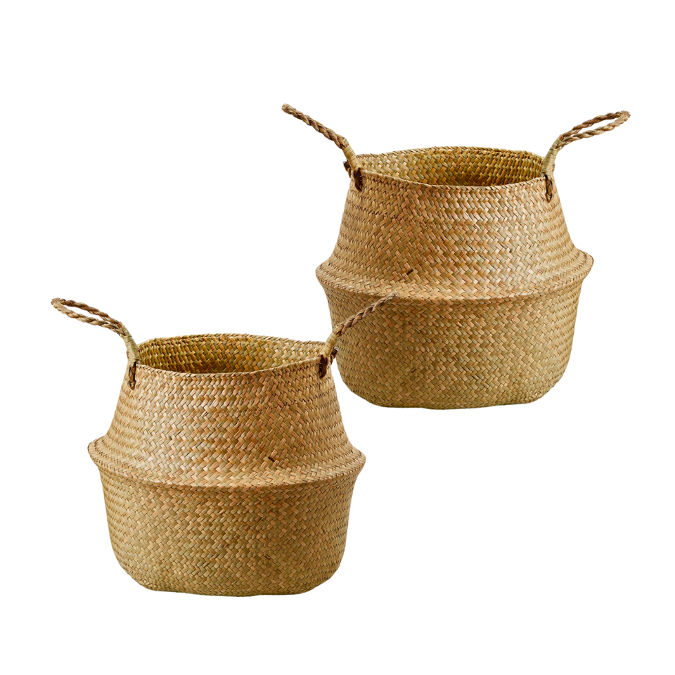Handcrafted SEAGRASS BELLY BASKETS Ideal Straw Basket for Bohemian and Coastal Decor Perfect for Plants Laundry Blanket Storage