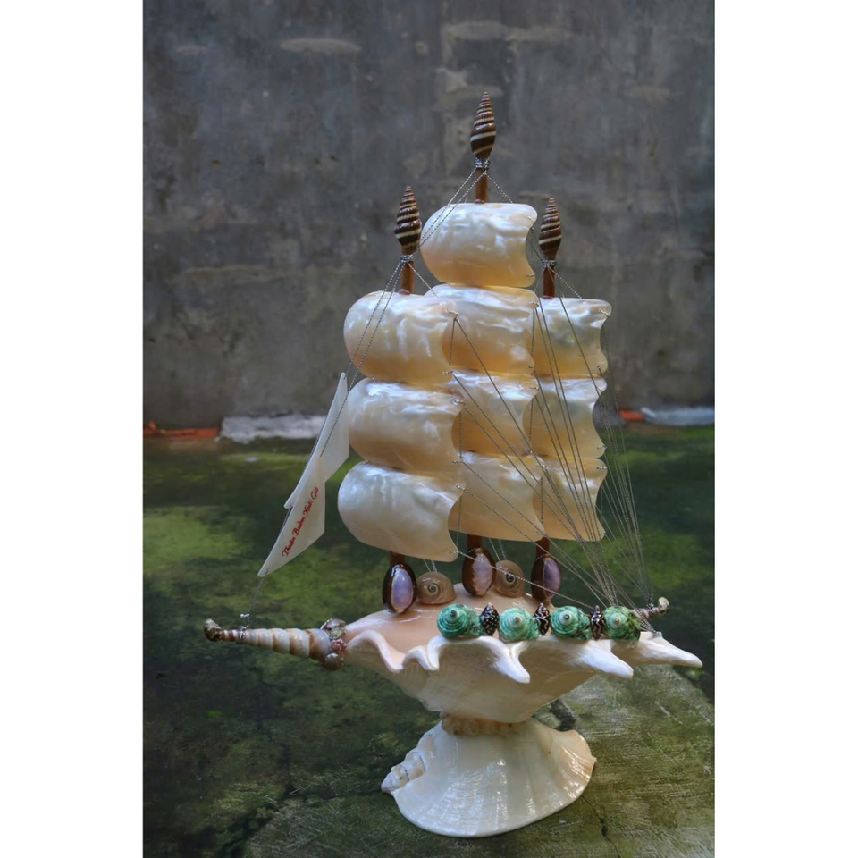 Handcrafted Seashell Ship Figurine Gifts & Souvenirs from Natural Ocean Sea Shells Vietnam