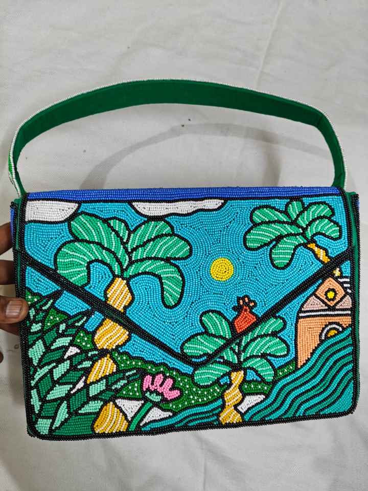Handcrafted Seed Bead Embroidered Lightweight Square Shape Customizable Clutch Bag
