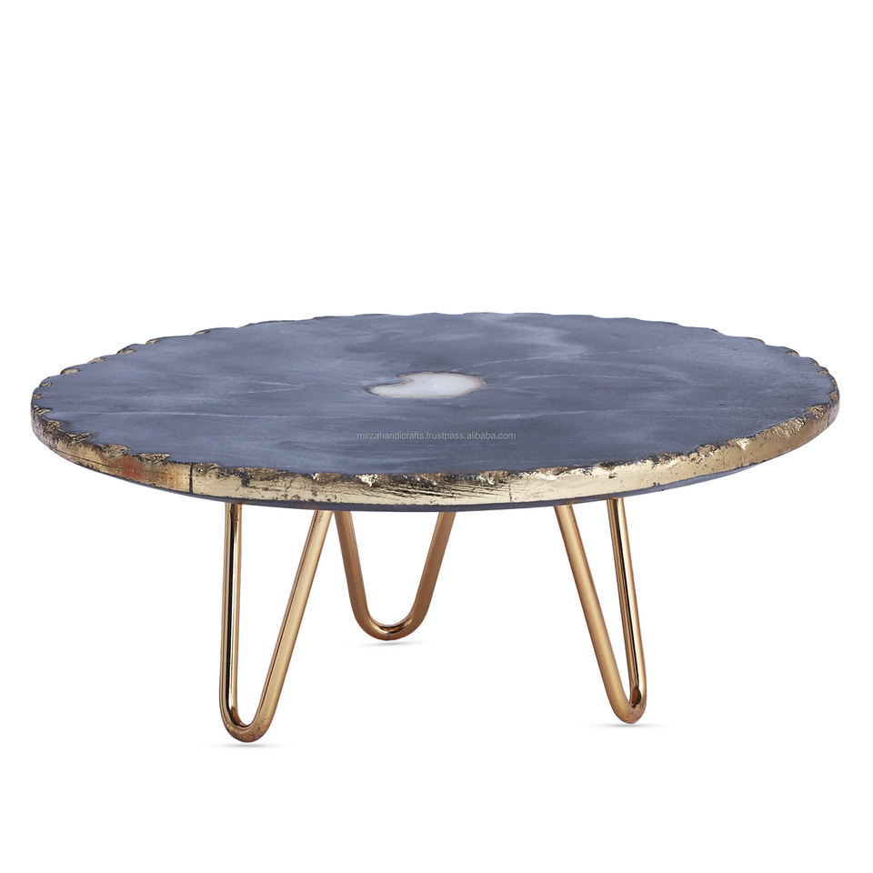 Handcrafted Serving Cake Stand Resin Epoxy Mold Round Agate Cake Stand Centerpiece with Gold Rim for Home Kitchen Decor