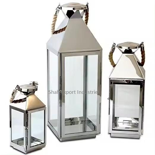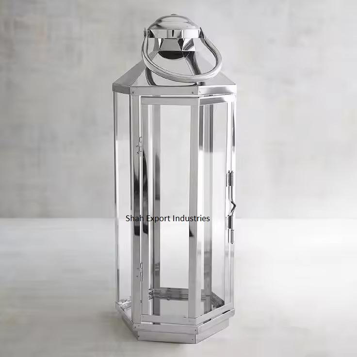 Handcrafted Shiny Tall Stainless Steel/Glass Candle Lantern for Home & Wedding Festival Lighting Decor Lantern