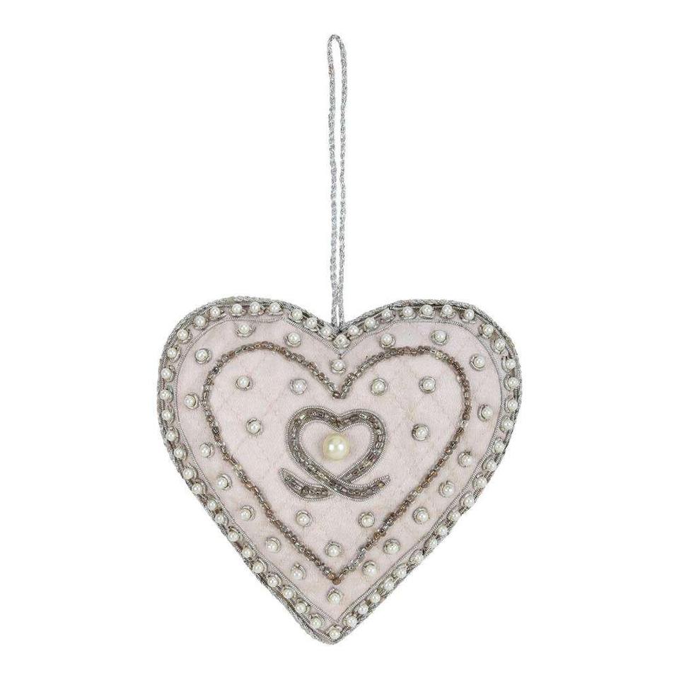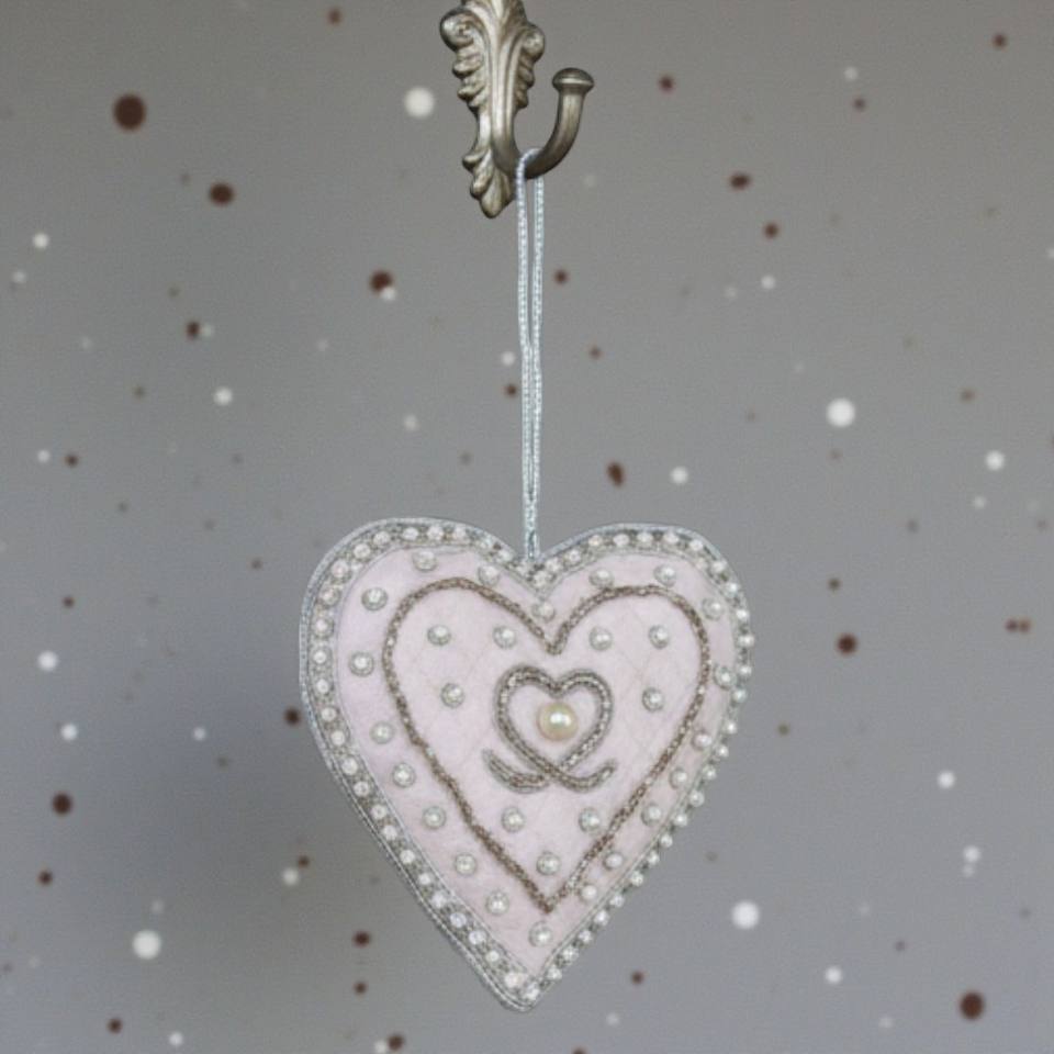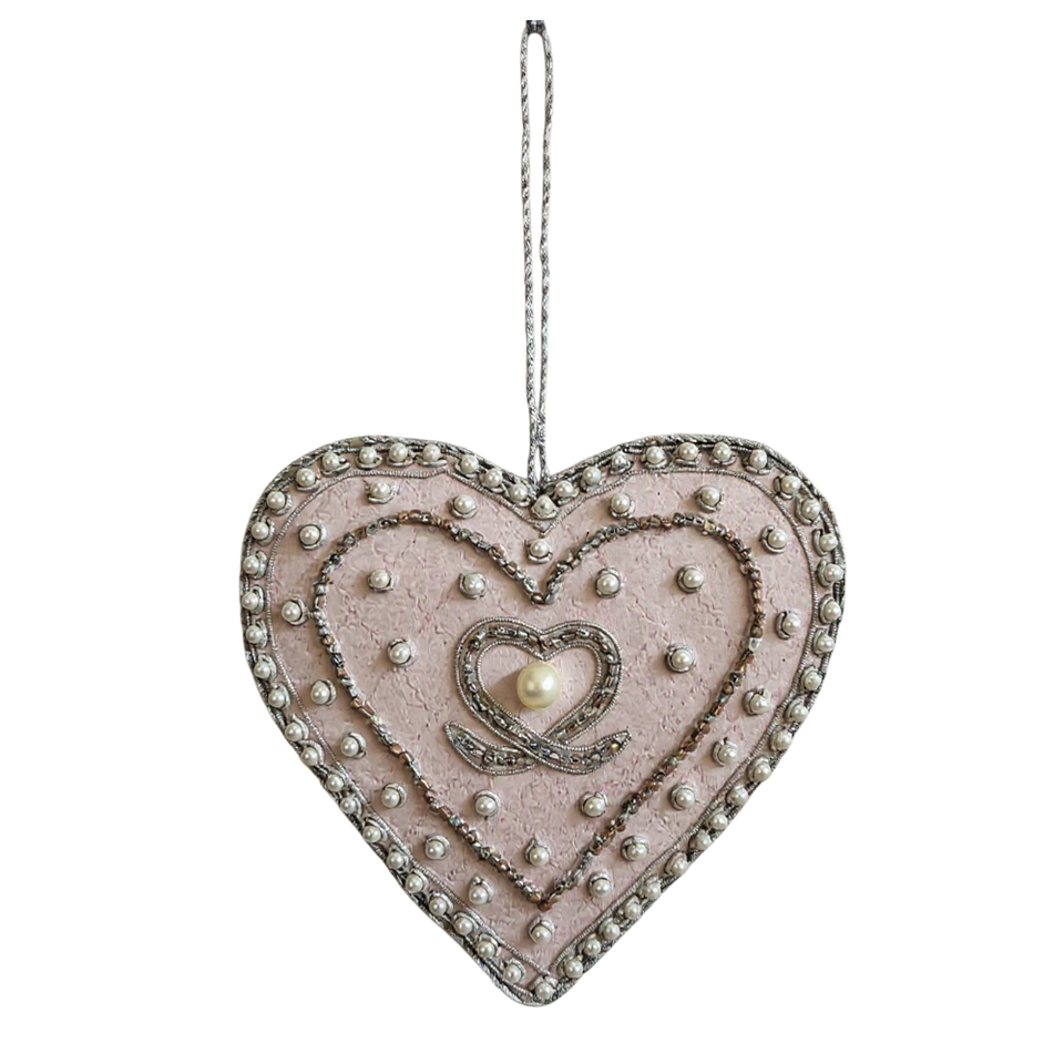 Handcrafted Silver Heart Zari Ornament | Metallic Thread Heart Hanging for Christmas, Wall Decor & Gifting
