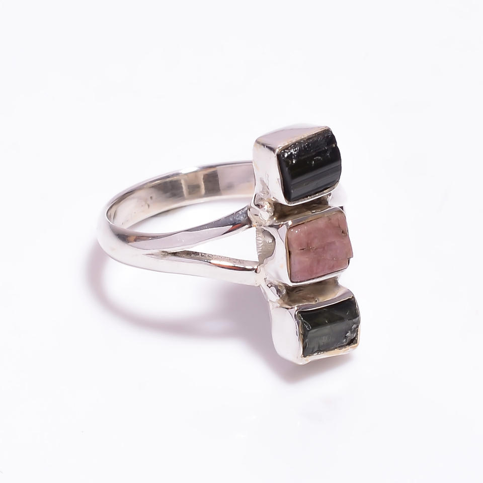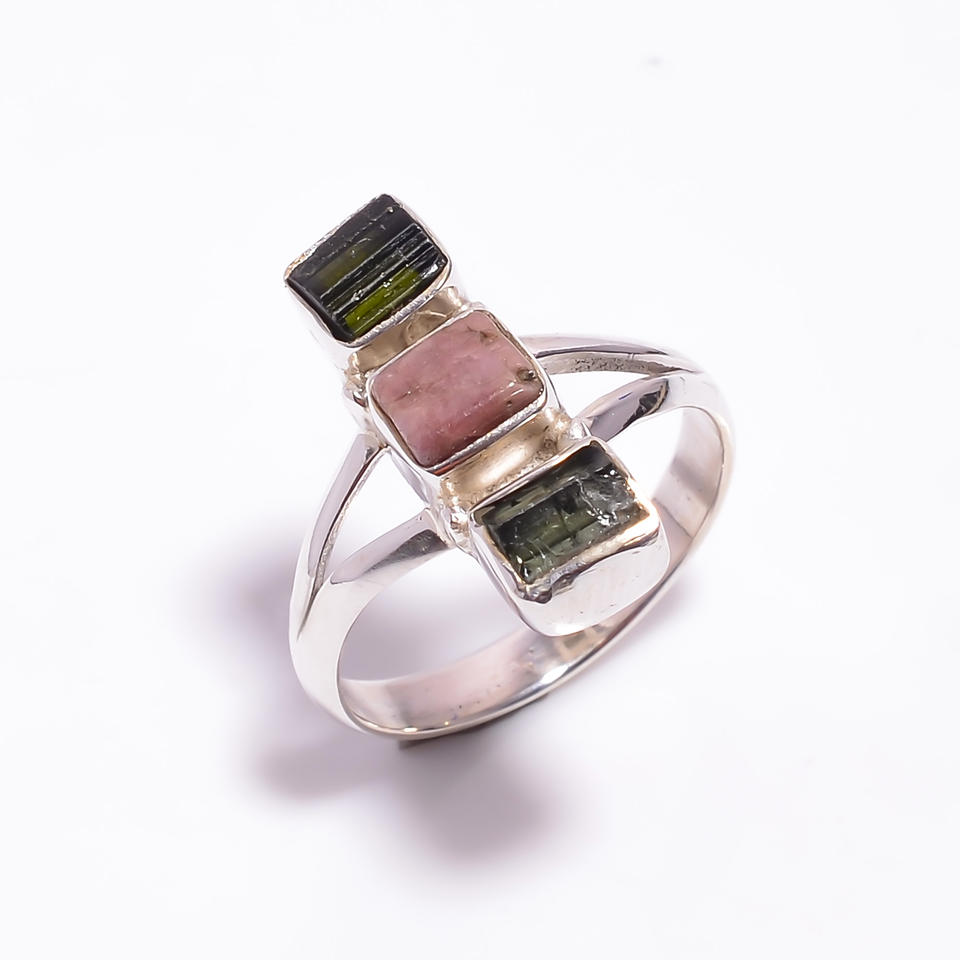 Handcrafted Silver Wedding/Engagement Party Ring New Fashion 8.25 US Size Multi-Tourmaline 6X4 mm Rectangle Ethnic Style