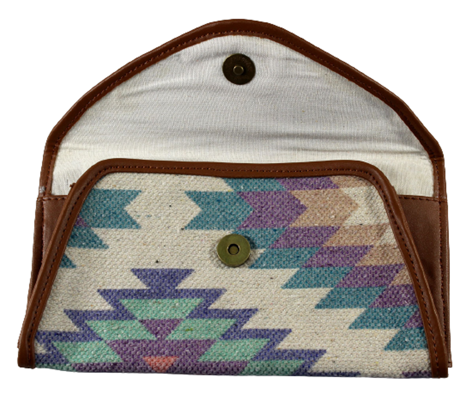 Handcrafted Small Purse for Women Stitched from Hand Woven Cotton Dhurry/Kelim Featuring Traditional Patterns Print