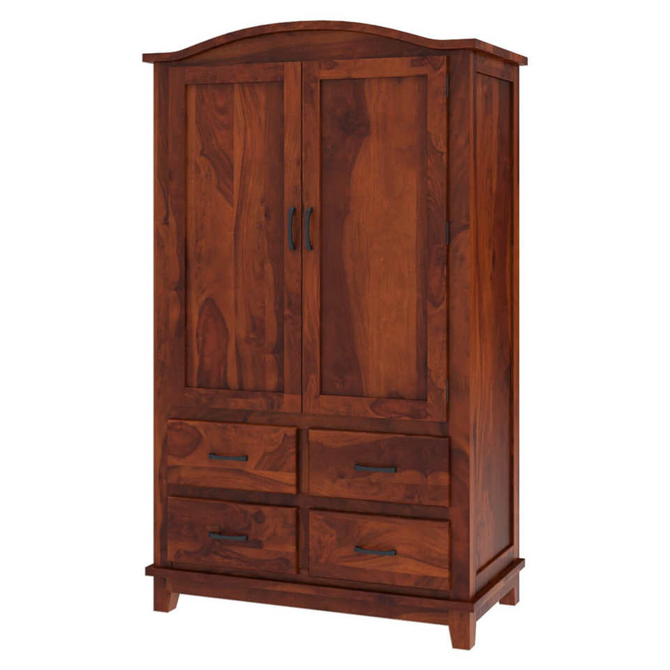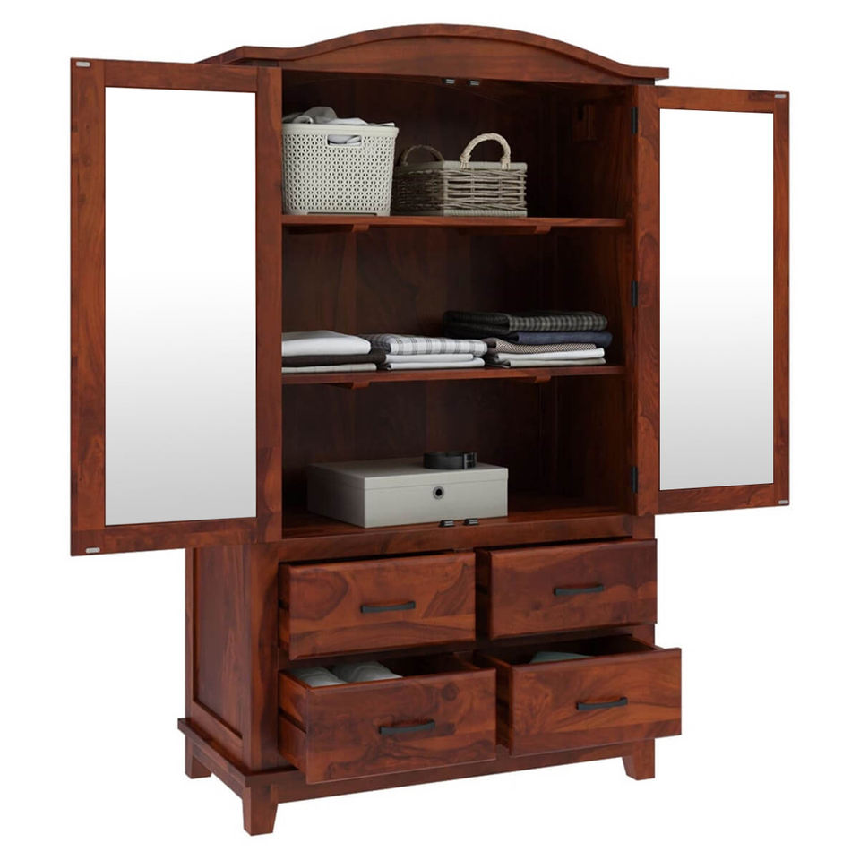 Handcrafted Solid Teak Wood Large Modern Wardrobe Armoire with Mirror 4 Drawers Bedroom Storage Cabinet for Hotel Apartment Use