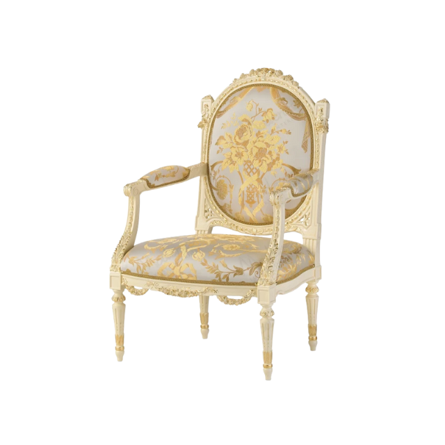 Handcrafted Solid Wood French Classic Accent Chair with Brocade Fabric Upholstery