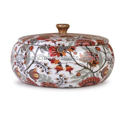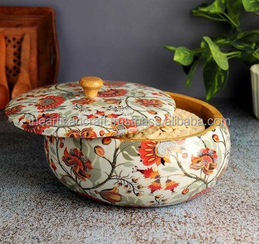 Handcrafted Polished Solid Wood Chapati Box-Souvenir for Kitchen Use Round Design with Lid-Artisan Craft