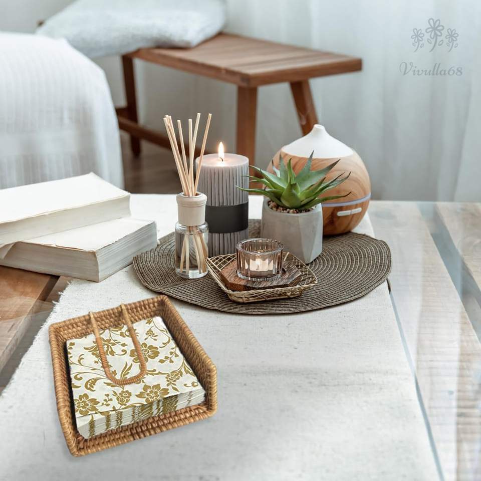 Handcrafted Square Rattan Napkin Holder for Kitchen and Bathroom Flat Guest Towel Tray Paper Holders