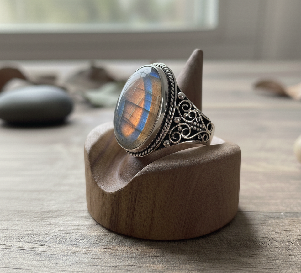 Handcrafted Sterling Silver Bezel Set Labradorite Gemstone Ring 18K Gold Plated Trendy Wedding Party Gift Women Rudra Gems