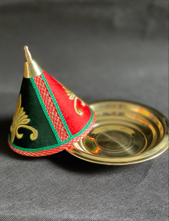 Mode:Handcrafted Tagine Dish in Copper With Colorful Velvet