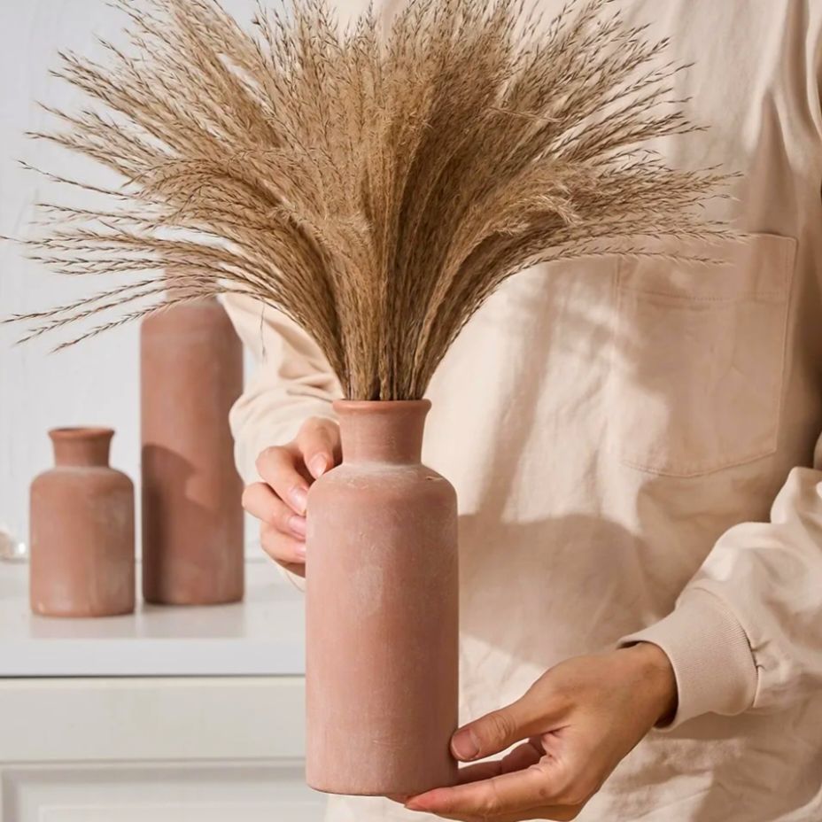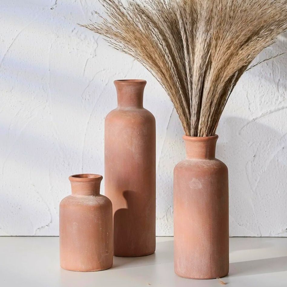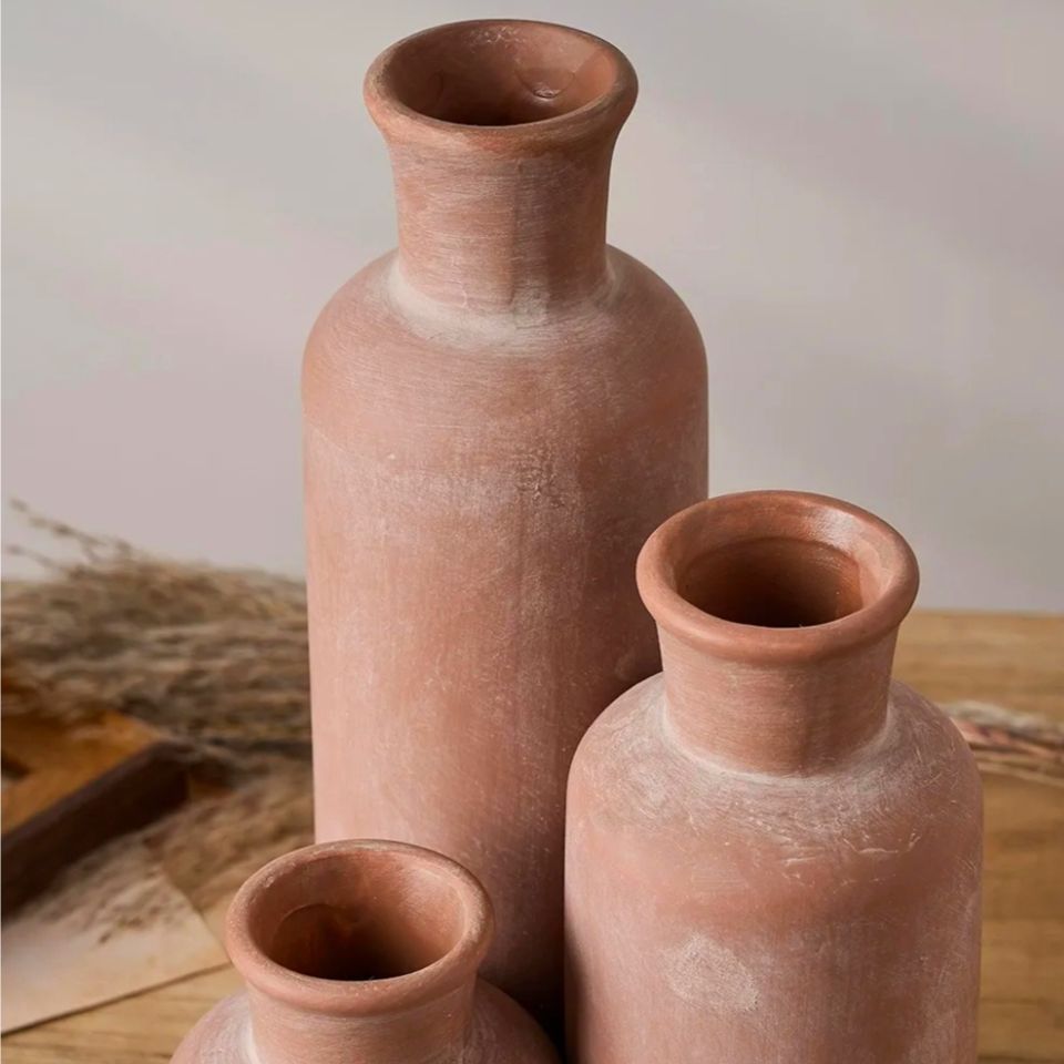 Handcrafted Terracotta Clay Vase Set of 3 Rustic Matte-Finish in Natural Earthy Tones for Home Tabletop or Boho Minimalist Decor