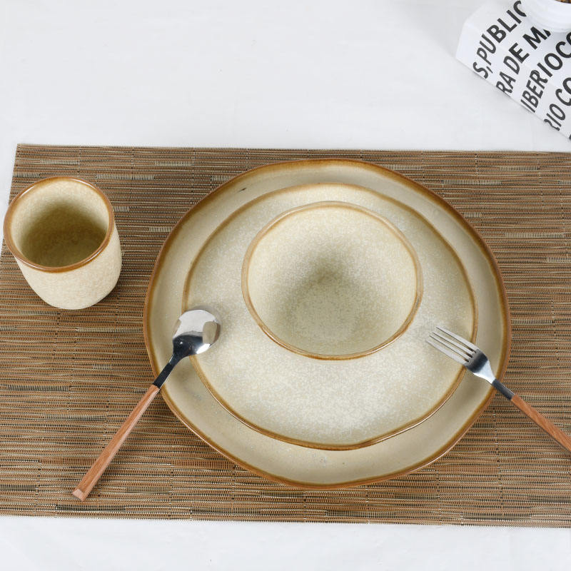 Handcrafted Terracotta Tableware Set Microwave-Safe Retro Dishes with Logo Printing Lead-Free Restaurant & Home Collection