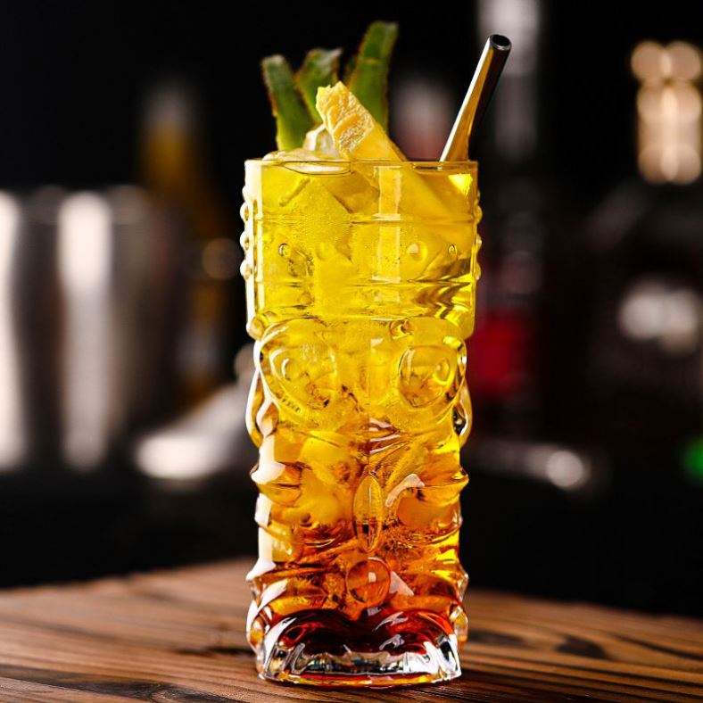 Handcrafted Tiki Mug Set - Polynesian Cultural Glass Cups for Cocktail & Juice