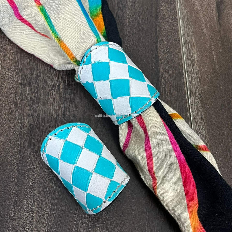 Product name:Hand Tooled Checkered Leather Scarf Holders