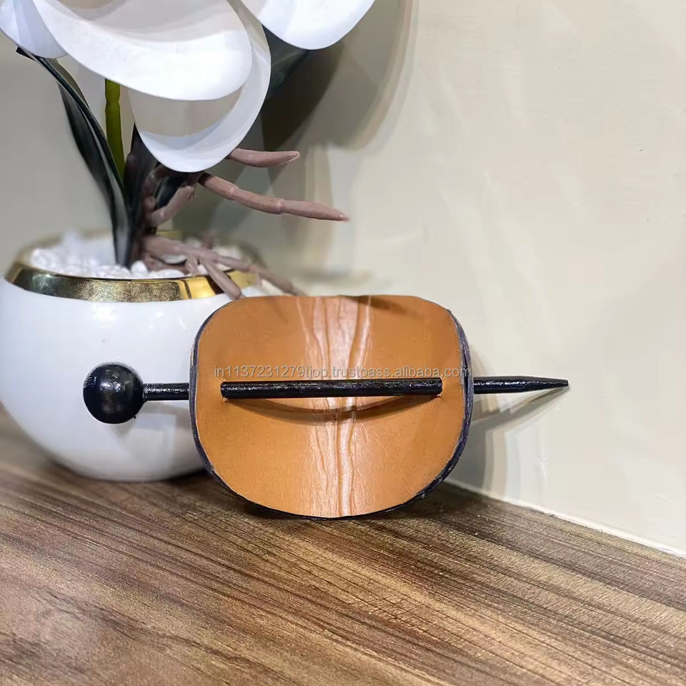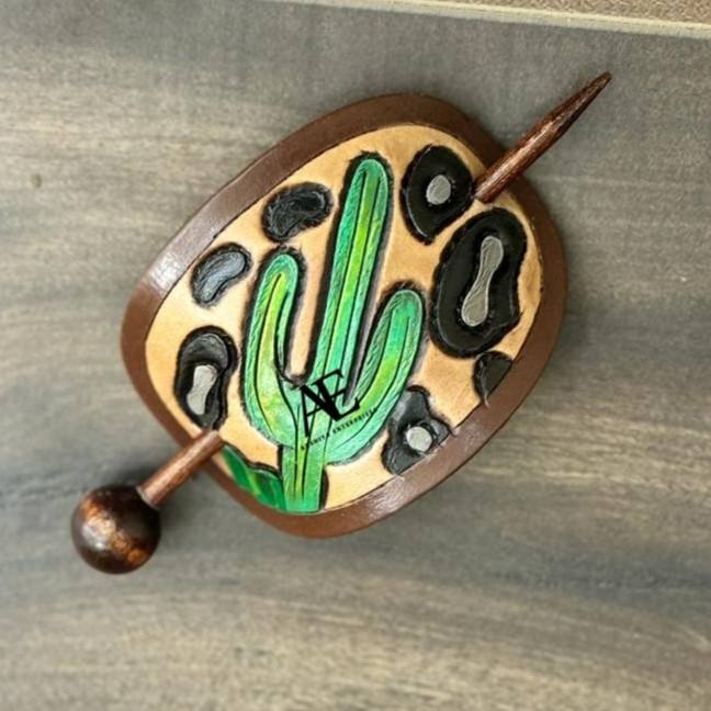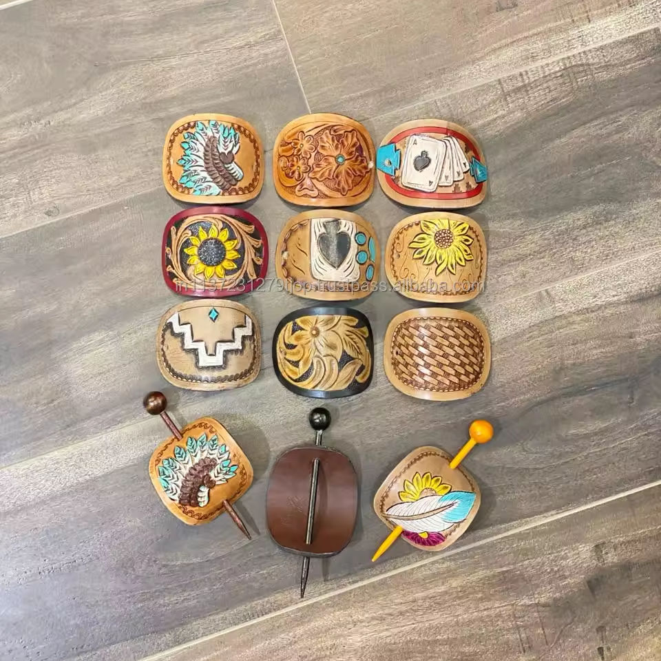 Handcrafted Tooled Leather Hair Barrette Vintage Hair Stick High Quality Western Genuine Leather Women Clips Hair Stick
