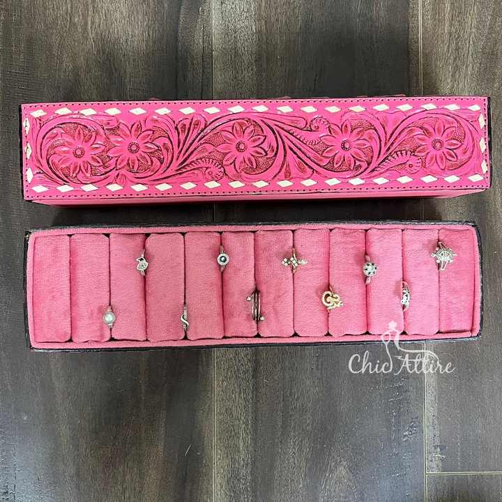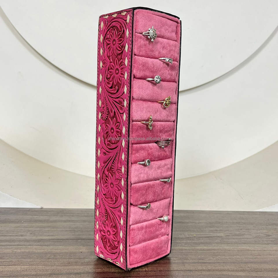 Handcrafted Tooled Leather Ring Display Holder Jewelry Storage Box Stand Luxury Designer Jewelry Organizers for Store & Home Use