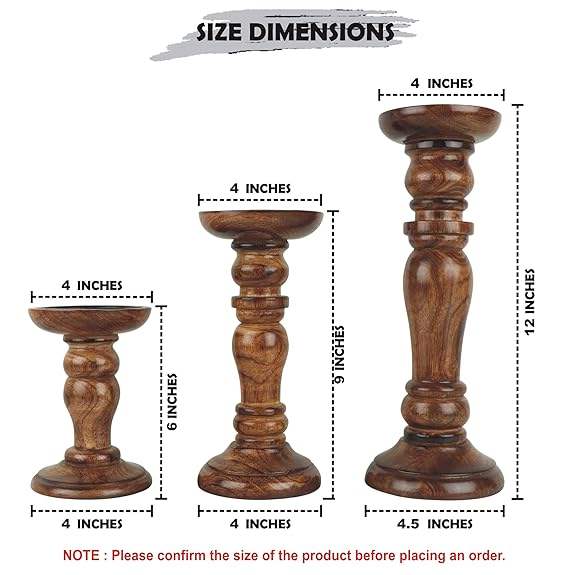 Handcrafted Traditional Farmhouse Wooden Candle Holders Set Rustic Home Decor Carved Wood Candlesticks for Wedding Table Table