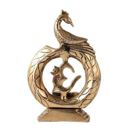 Handcrafted Traditional Golden Brass Peacock Oil Wick Diya With Om Design Diya Jyoti Deepam Temple Home Decoration SNE-138