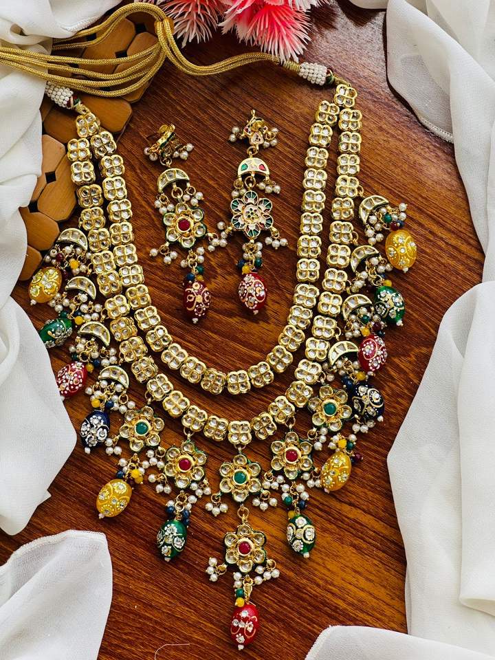 Handcrafted Traditional Meena Kari Stainless Steel Jewelry Set Classic Style with Colorful Enamel Work for Bridal Festive Wear