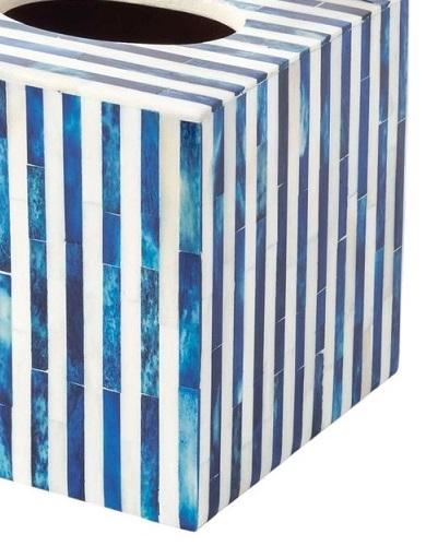Handcrafted Traditional Square Bone Inlay Tissue Box in Fine Geometric Print and Bold Contrasting Color Scheme