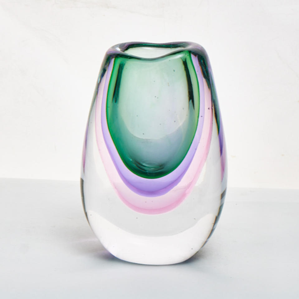 Handcrafted Translucent Liuli Art Deco Crystal Vase Floral Motif Carved for Wedding or Bar Mitzvah Tabletop Decor