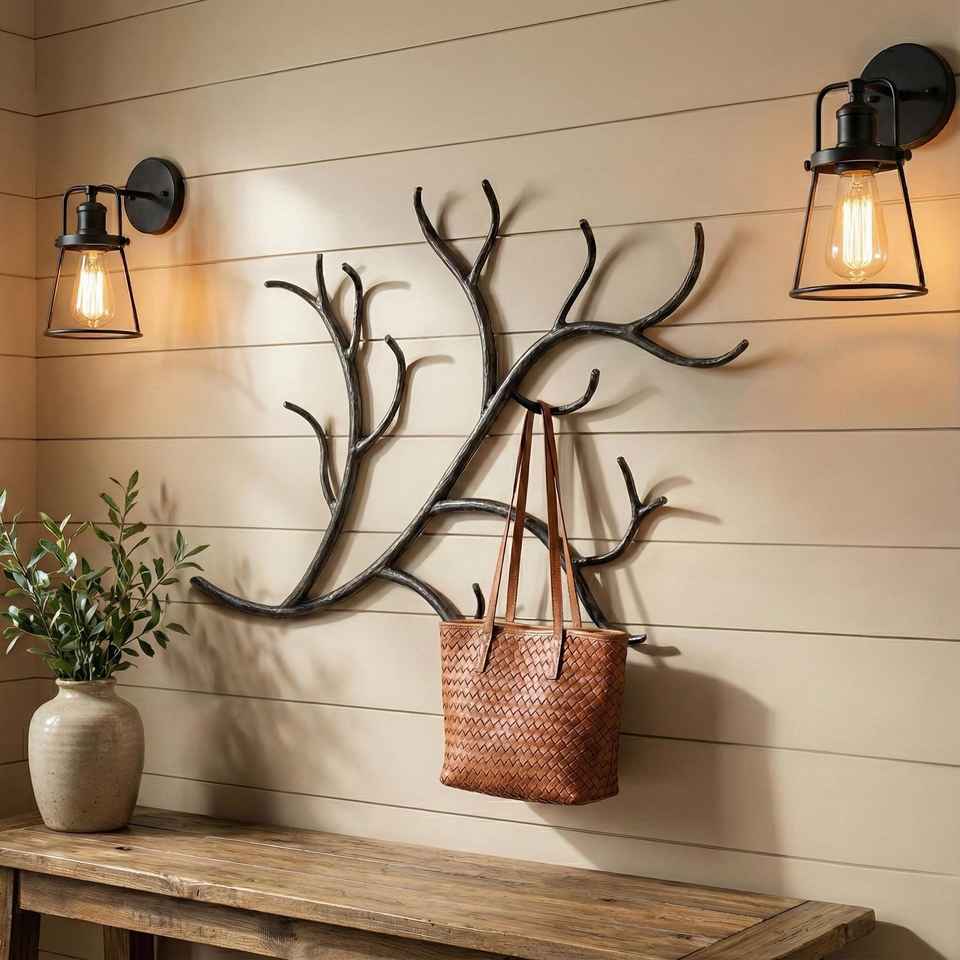 Handcrafted Tree Branch Iron Wall Mounted Coat Rack Artistic Metal Entryway Organizer For Bags Jackets Hats Scarves Rustic